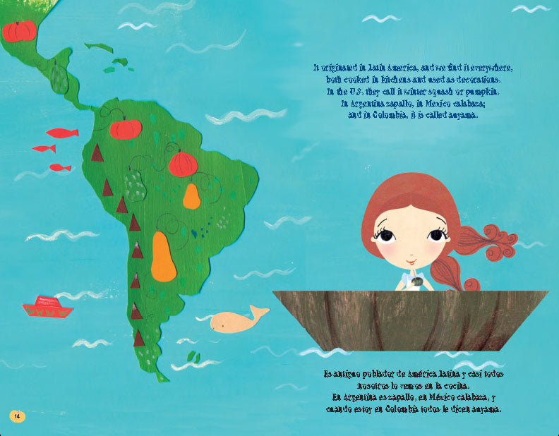 This is the story of a girl and her love for squash in its many varieties. Her excitement takes the reader on a journey where they learn about the different names and uses of squash across various cultures. Lupita also shares secrets about how squash grows, from a tiny seed to a beautiful and versatile plant. Gastronomy, botany, and ecology blend in this story to bring kids closer to the natural world around them.