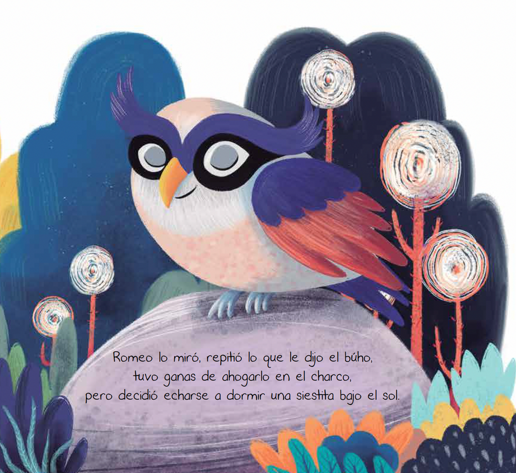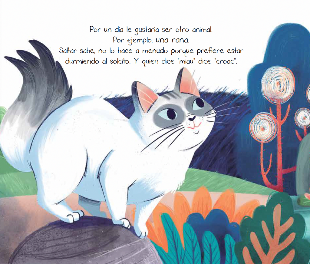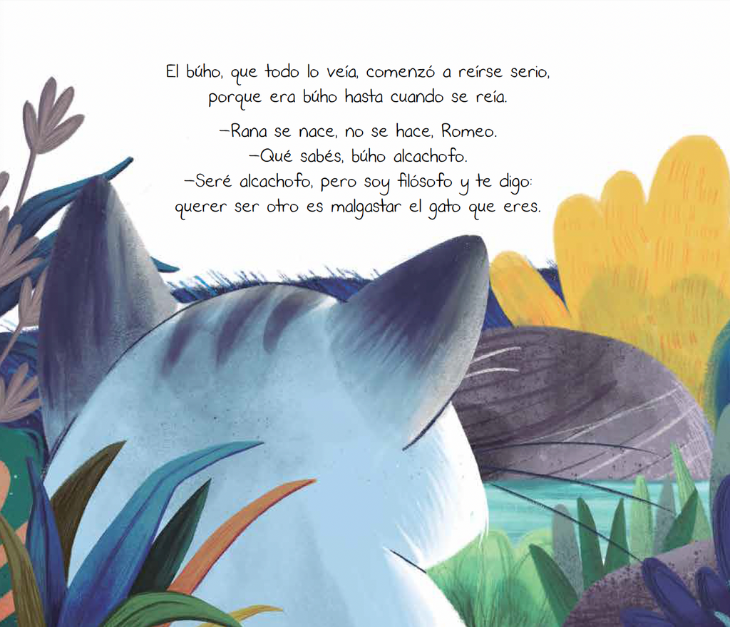 Romeo is not satisfied with being a cat; so he will try to be a frog, a rooster and even a rabbit. Luckily his friend the owl watches him and gives him good advice. A story about self love.